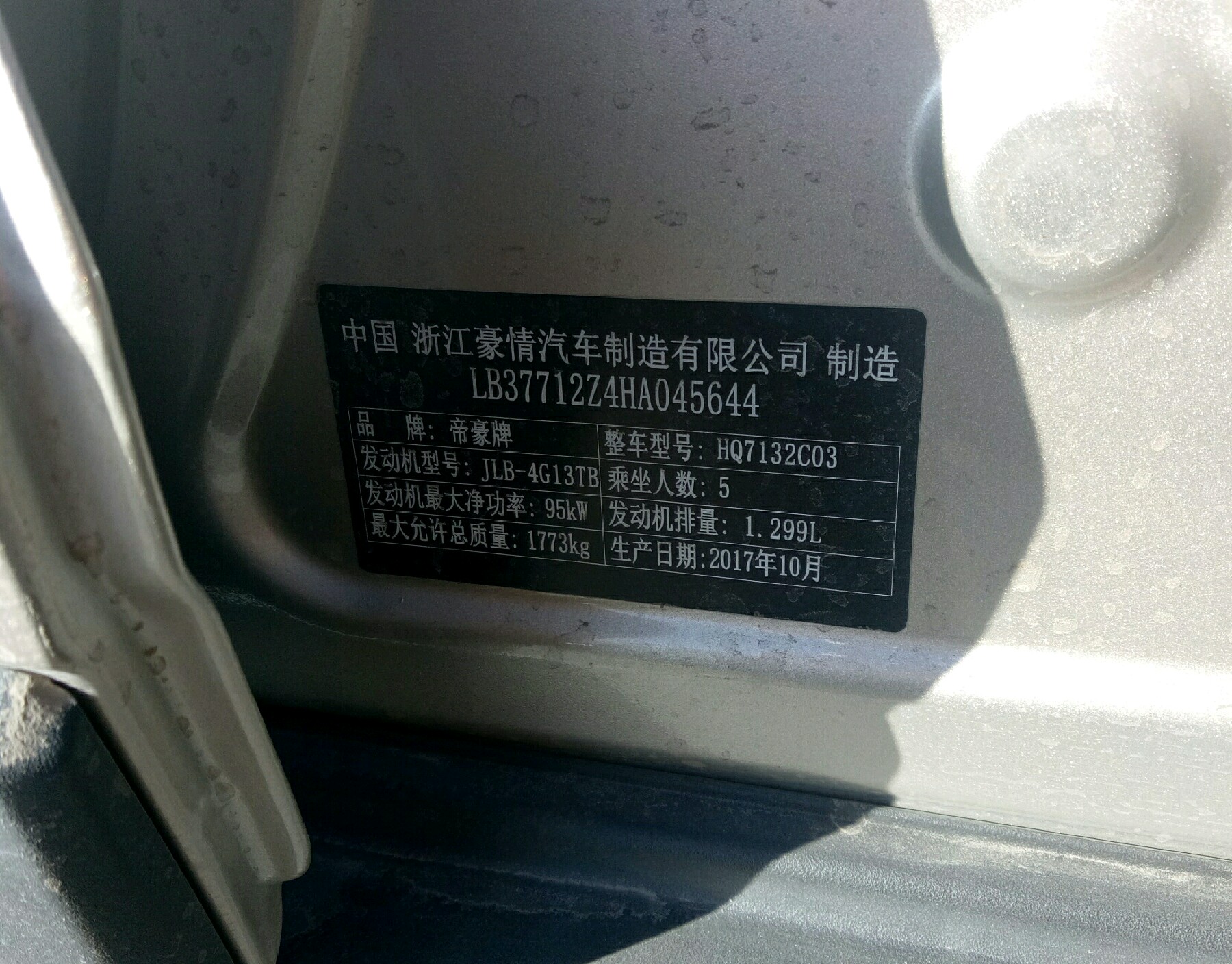 车辆铭牌